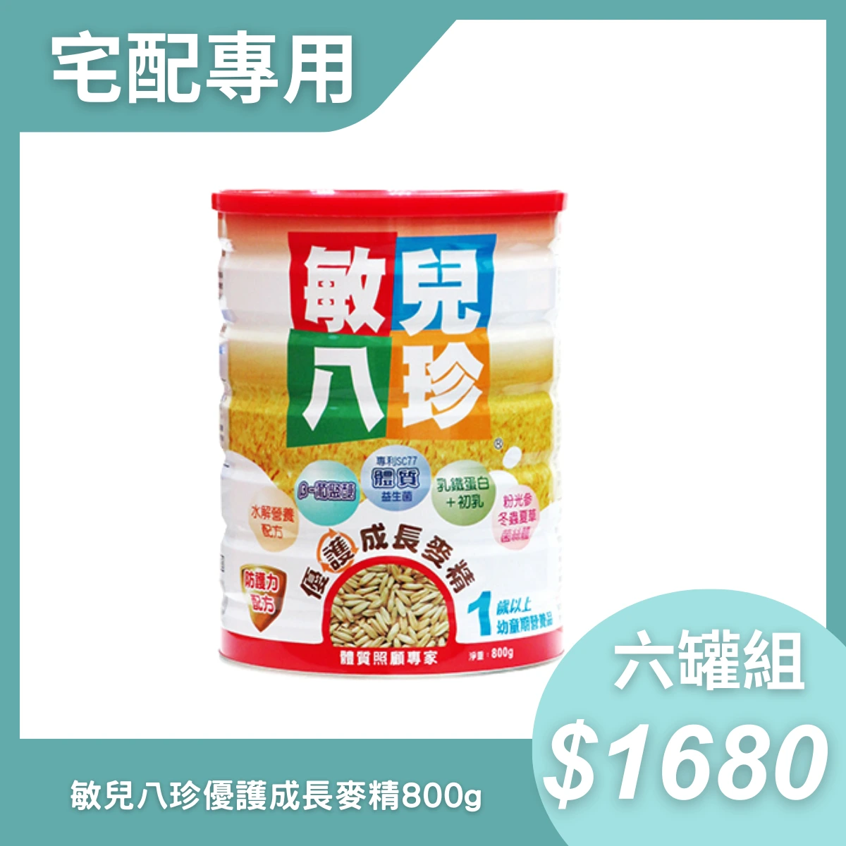 【宅配專用】敏兒八珍優護成長麥精800g 六罐組(002946/4719859055166)