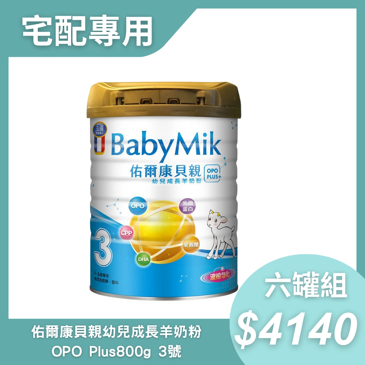 【宅配專用】佑爾康貝親幼兒成長羊奶粉OPO Plus 800g 六罐組(100011/4716761100595)