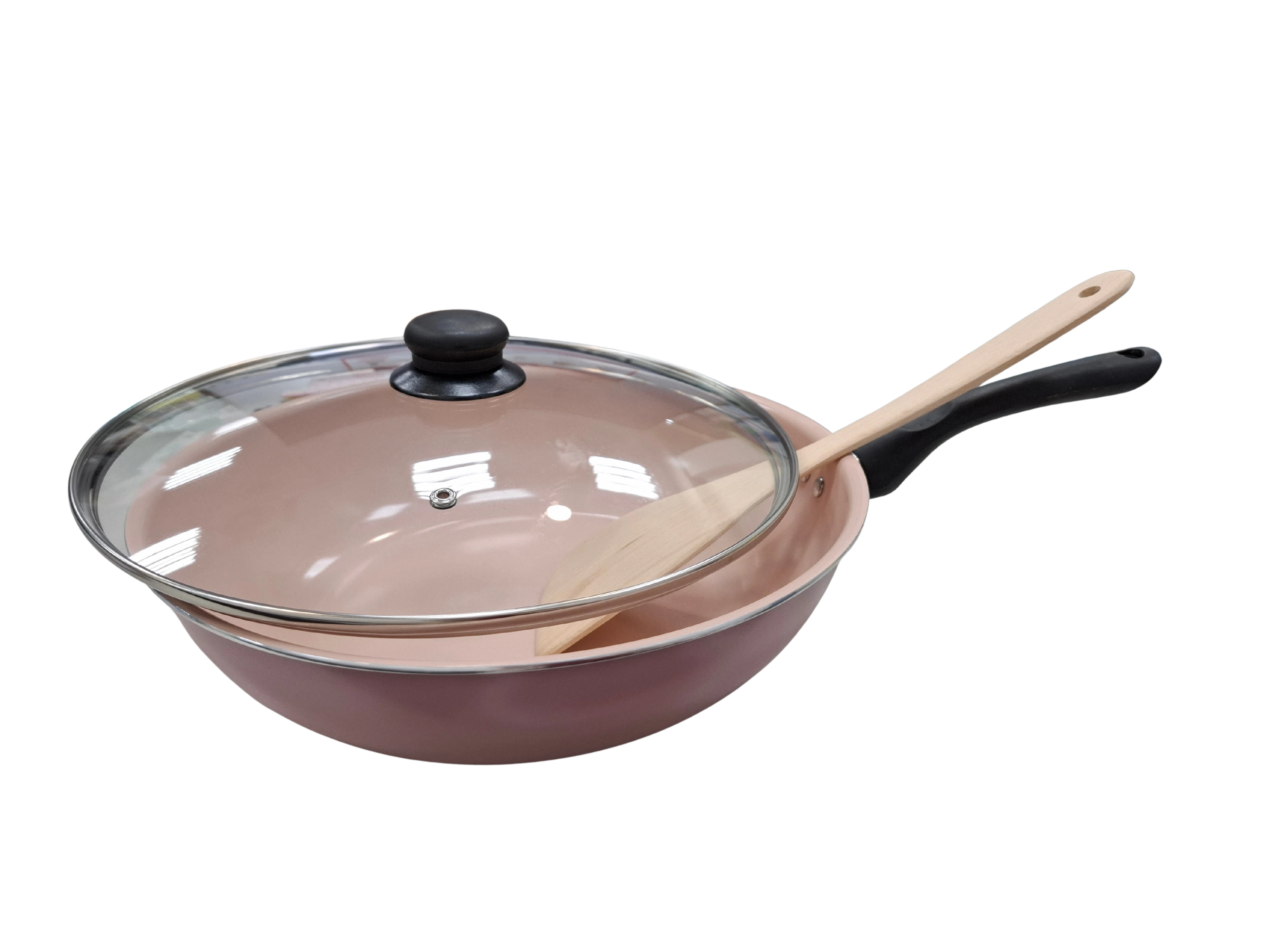 瑞士MONCROSS 30cm粉嫩橘陶瓷不沾炒鍋組(ZZ0792/4714247323742)