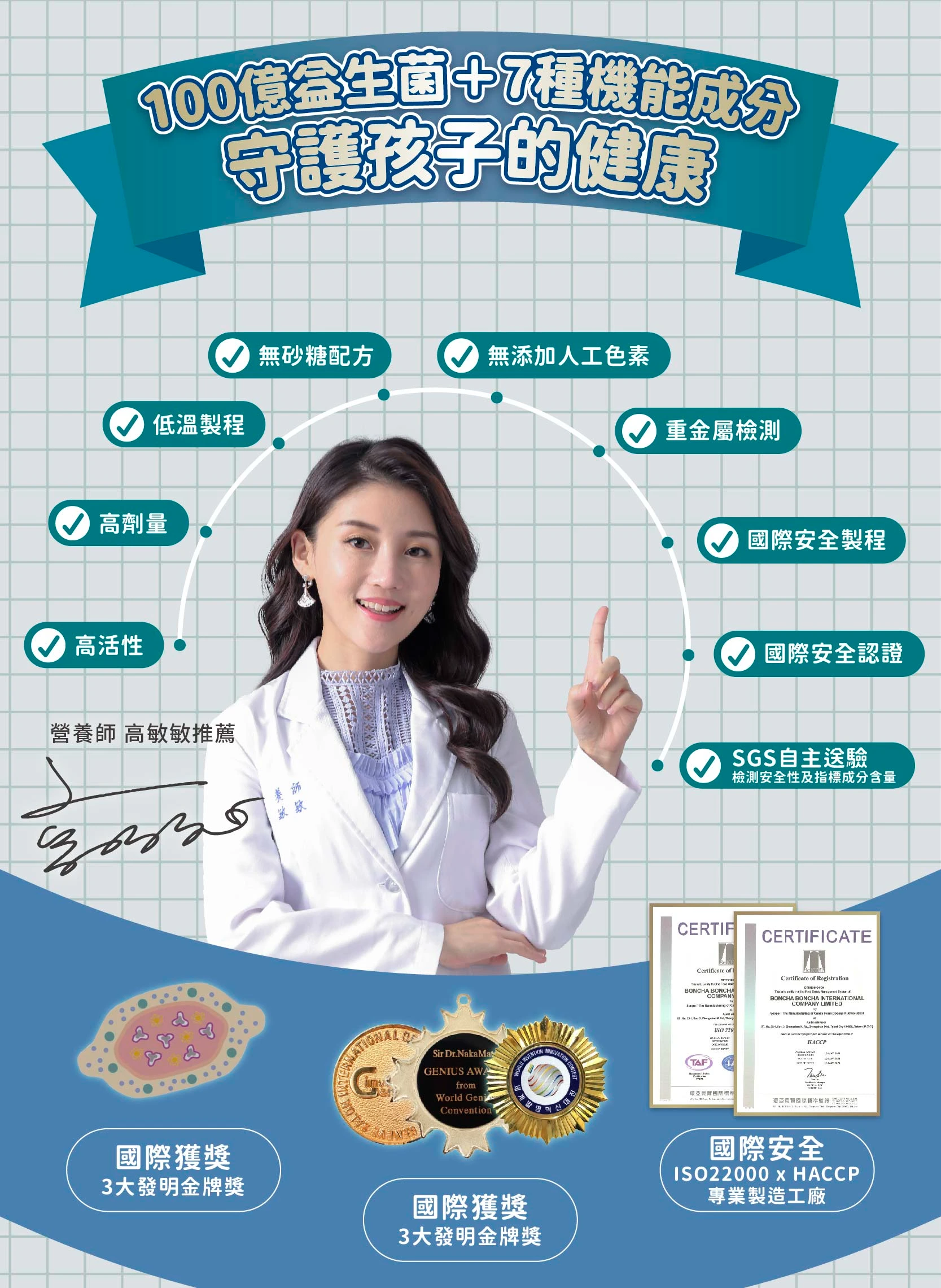 ▲自主送驗較安心:除原廠提供之檢驗報告外,皆另外自行送驗SGS及各大檢驗單位檢測安全性及指標成分含量。
