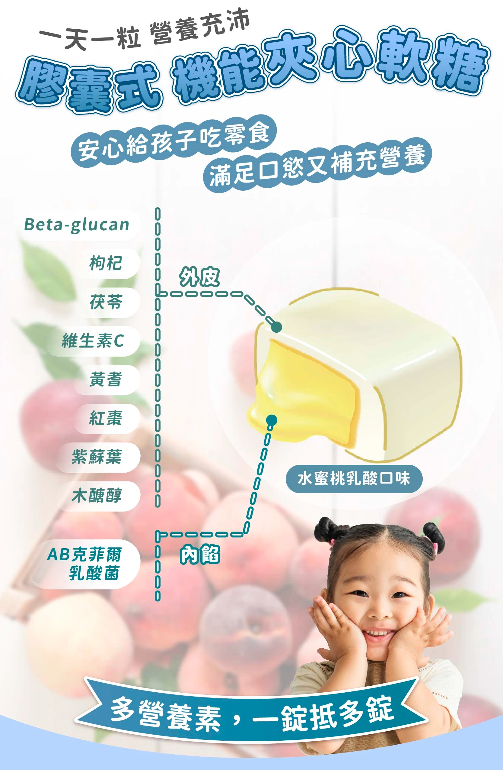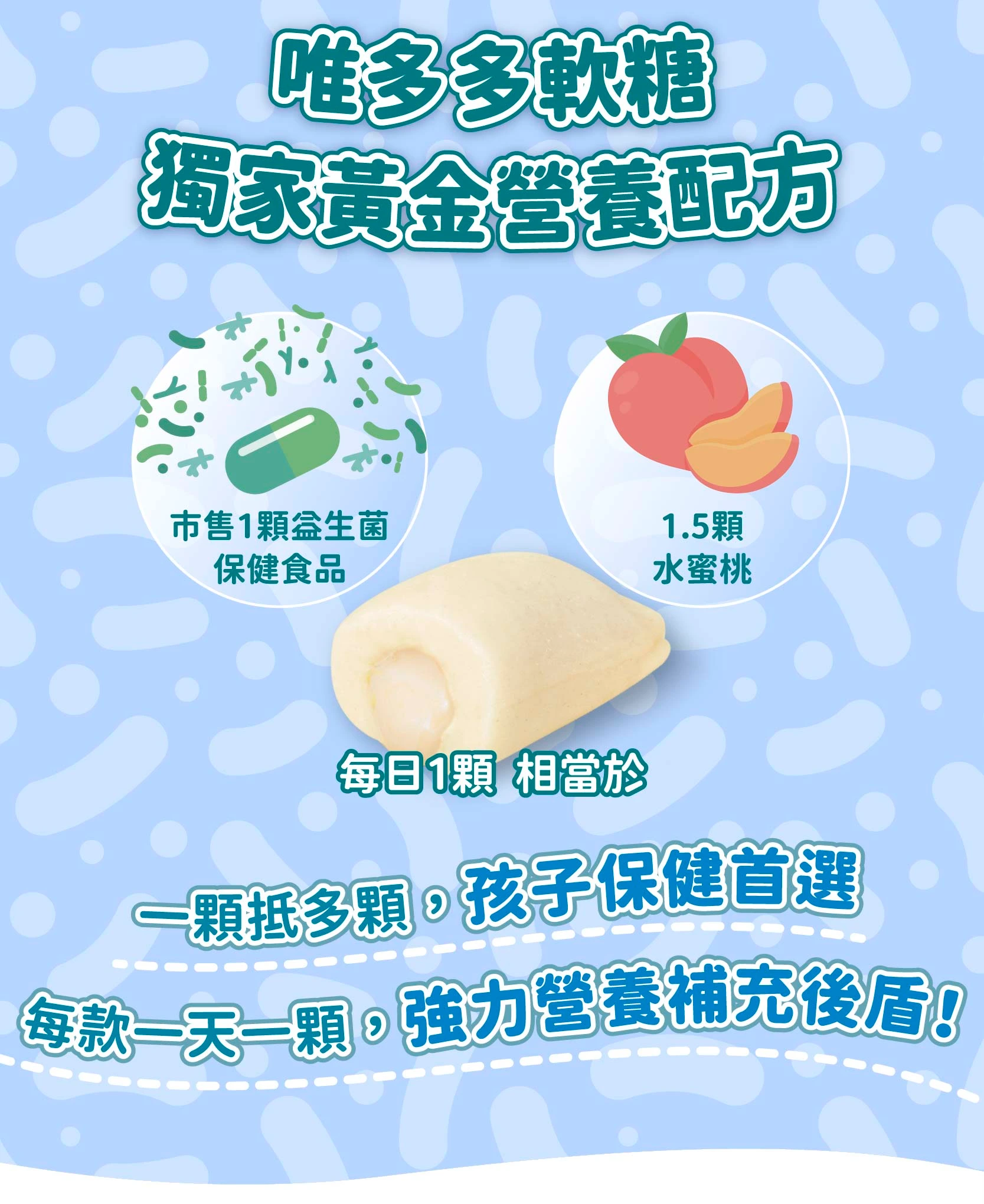 ▲一天一顆簡單方便:孩童一天一顆即足量,無需吃多種瓶瓶罐罐,一款即可滿足,高CP值。