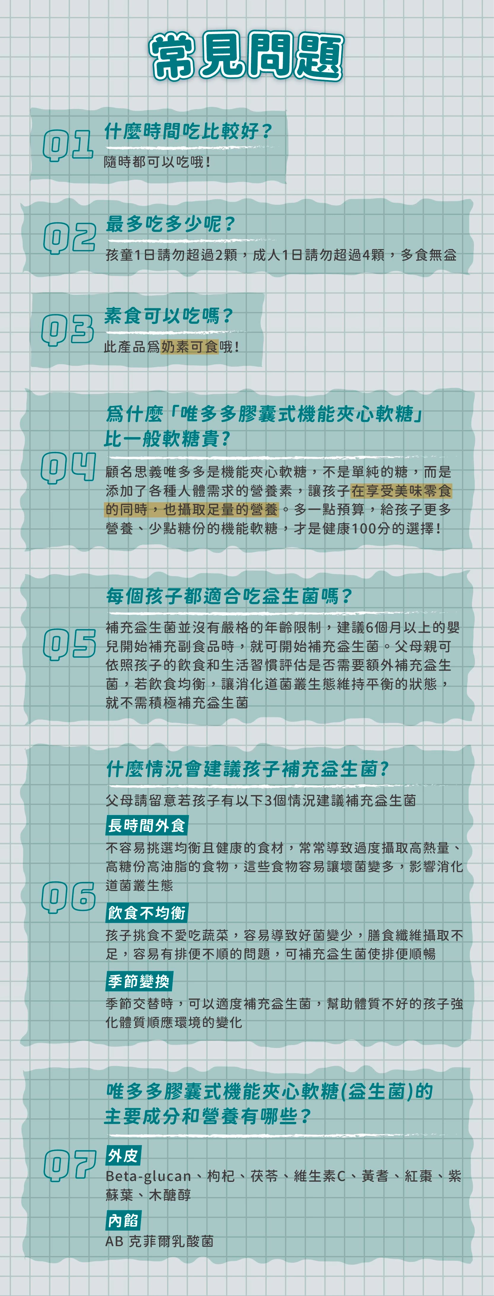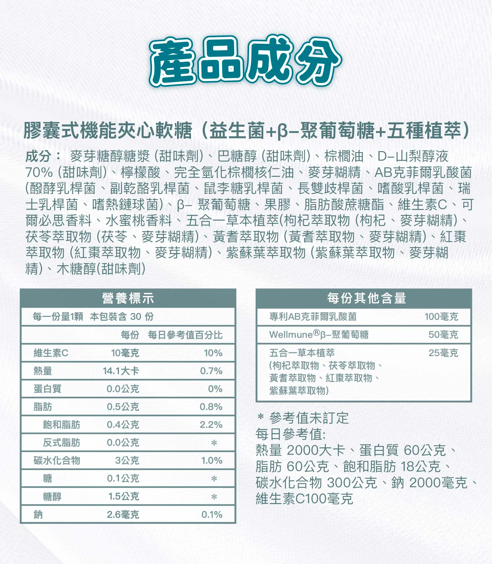 4.本產品含有AB克菲爾乳酸菌(牛奶及大豆來源),成人一日請勿超過5顆,多食無益。